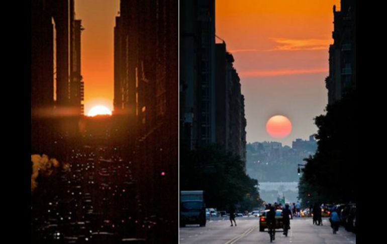 Tecnología | El fenómeno ocurre dos veces al año y atrae las miradas de miles de personas El 'Manhattanhenge' ilumina el puente a Nueva York El fenómeno ocurre dos veces al año y atrae las miradas de miles de personas Por: EFE 29 de mayo de 2016 - 16:06 hs El 'Manhattanhenge' es el momento en el que el sol se alinea al atardecer con la cuadrícula urbana de Nueva York. TWITTER / @nycgob NUEVA YORK, ESTADOS UNIDOS (29/MAY/2016).- El llamado "Manhattanhenge", el momento en el que el sol se alinea al atardecer con la cuadrícula urbana de Nueva York, alegra este año el puente de los caídos a los neoyorquinos, que podrán disfrutar del fenómeno hoy y mañana. El "Manhattanhenge" se produce dos veces al año y atrae siempre a multitud de personas a ciertos puntos de la isla para apreciar las espectaculares vistas del sol. El fenómeno -que recibe su nombre por un juego de palabras con el monumento prehistórico inglés de Stonehenge- permite ver el gran disco rojo descender entre los rascacielos de la ciudad antes de esconderse en las aguas del río Hudson. En esta ocasión, el "Manhattanhenge" coincide con el Memorial Day que se celebra este lunes, el día en que Estados Unidos rinde homenaje a sus caídos en guerra y que marca tradicionalmente el inicio de la temporada estival. Aunque el fenómeno se da también en otras ciudades construidas en cuadrícula, la altura de los edificios de la Gran Manzana hace de Nueva York la ciudad más popular para disfrutar y fotografiar esta peculiar vista del sol. Según los expertos, las calles más anchas de Manhattan (14, 23, 34, 42 o 57) son habitualmente el mejor lugar para disfrutar del espectáculo. Temas Astronomía Nueva York Sol Recibe las últimas noticias en tu e-mail Todo lo que necesitas saber para comenzar tu día Registrarse implica aceptar los Términos y Condiciones