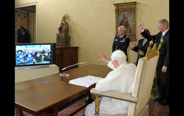 Tecnología | Conversa con los 12 astronautas El Papa Benedicto XVI se conecta al espacio La comunicación se dio desde el Vaticano Por: AP 21 de mayo de 2011 - 08:09 hs CABO CAÑAVERAL, ESTADOS UNIDOS (21/MAY/2011).- Los 12 astronautas en órbita alrededor de la Tierra recibieron una llamada telefónica y la bendición del Papa Benedicto XVI el sábado, la primera de un pontífice al espacio. Benedicto se dirigió a los tripulantes del transbordador Endeavour y la Estación Espacial Internacional desde el Vaticano. Dos de los astronautas son italianos: Roberto Vittori en el transbordador y Paolo Nespoli en la estación. El Papa dijo que admiraba el valor, la disciplina y la abnegación de los astronautas. También expresó esperanzas de que la esposa del comandante Mark Kelly siga mejorando. La representante Gabrielle Giffords, esposa de Kelly, fue herida de bala en la cabeza en enero. Kelly le agradeció. Benedicto también expresó su preocupación por Nespoli, cuya madre murió en el norte de Italia a principios de mayo, cuando él se encontraba en la estación espacial. ¿Cómo has vivido este tiempo de dolor en la Estación Espacial Internacional?", preguntó el Papa. ¿Te sientes aislado y solo, o están unidos con en una comunidad que los sigue con atención y afecto?" "Santo Padre, sentí que sus oraciones y las oraciones de todos llegaban aquí... donde podemos ver la Tierra y sentir todo lo que nos rodea", respondió Nespoli en italiano. "Me sentí muy lejos, pero también muy cerca, y el pensamiento de que todos ustedes estaban cerca de mí fue un gran consuelo". Nespoli finalizará su estadía de cinco meses en la estación el lunes y regresará a Tierra en una cápsula espacial Soyuz rusa. Llevará consigo una medalla de plata que Vittori transportó a la estación espacial en el Endeavour, y que le entregó el Papa. Muestra una reproducción de la "Creación del hombre", de Miguel Angel. Vittori mostró el medallón y lo entregó a Nespoli, situado en el otro extremo de la fila delantera de astronautas. "Lo traje conmigo al espacio y él lo llevara a la Tierra para devolvérselo", dijo Vittori al pontífice. Vittori dijo que reza en el espacio. Las jornadas de trabajo son intensas, añadió. "Pero todos tenemos la oportunidad cuando llega la noche de mirar... a la Tierra. Nuestro planeta, el planeta azul, es hermoso", dijo. La audiencia papal a distancia fue organizada por las agencias espaciales europea e italiana, con apoyo técnico de la NASA desde Houston. Dos horas y media antes de la conversación, los astronautas del transbordador inspeccionaron un pequeño tajo en la cara inferior del Endeavour para garantizar su seguridad cuando regresen a Tierra el 1 de enero. Temas Astronautas Papa Benedicto Astronomía Recibe las últimas noticias en tu e-mail Todo lo que necesitas saber para comenzar tu día Registrarse implica aceptar los Términos y Condiciones