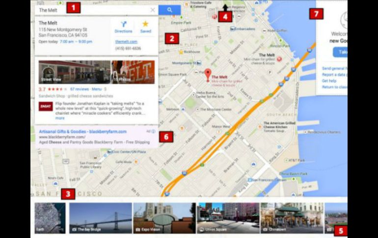 Tecnología | La nueva imagen se presenta con un diseño más colorido y detalles en las carreteras Filtran imágenes de la nueva interfaz de Google Maps Un portal especializado presume las que podrían ser las actualizaciones del servicio de mapas Por: EL INFORMADOR 8 de mayo de 2013 - 13:15 hs La nueva interfaz contará con un apartado para valoración de inmuebles. ARCHIVO / GUADALAJARA, JALISCO (08/MAY/2013).- A una semana del inicio de la conferencia de desarrolladores de Google, en las redes sociales han circulado imágenes de lo que podría ser el nuevo estilo del servicio de mapas, Google maps, en donde se presume una mayor interacción con la red social Google Plus. Según el sitio Google Operating System, la nueva interfaz se presenta con un diseño más colorido, con ventanas flotantes y detalles en las carreteras así como un apartado para la valoración de inmuebles (cafés, restaurantes, hoteles) en la parte inferior. En las imágenes se puede apreciar que la barra lateral ya no se encuentra, dejando más espacio para que el mapa se pueda desplegar en toda la pantalla. En su lugar, la ventana principal desplegará información del establecimiento que se busque. Los medios especializados publican su lista de pronósticos para el próximo Google I/O, a desarrollarse del 15 al 17 de mayo en Moscone Center, San Francisco, donde figuran: la próxima actualización de su sistema operativo móvil Android, el precio final y la fecha para conseguir los dispositivos de realidad aumentada, Google Glasses y la nueva linea de tabletas Nexus. EL INFORMADOR/ ALEJANDRO OROZCO Temas Internet Google Páginas Web Lee También Los sesgos de género prevalecen en internet Internet Bienestar: Pasos para conservar tu número móvil Plataforma de Hulu llegará a México; esto se sabe ¿Cómo desactivar paso a paso las respuestas de IA en Google? Recibe las últimas noticias en tu e-mail Todo lo que necesitas saber para comenzar tu día Registrarse implica aceptar los Términos y Condiciones
