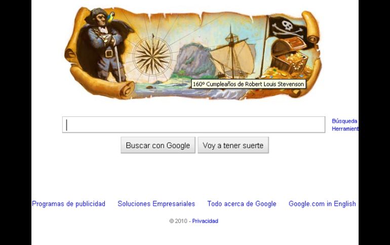 Tecnología | El popular buscador homenajea a su modo al novelista y poeta escocés Google conmemora el natalicio de Robert Louis Stevenson El buscador de internet rinde homenaje al novelista y poeta escocés Robert Louis Stevenson Por: EL INFORMADOR 13 de noviembre de 2010 - 12:32 hs La página principal del buscador amaneció con el ''doodle'' conmemorativo. ESPECIAL / GUADALAJARA, JALISCO (13/NOV/2010).- Google nos tiene acostumbrados a sus famosos "doodles" donde rinde homenaje de forma original a grandes figuras, aniversarios, fechas importantes etcétera. El día de hoy la página principal del buscador amaneció con el "doodle" referente al 160 aniversario del nacimiento del novelista, poeta y ensayista Robert Louis Stevenson. Stevenson nació el 13 de noviembre de 1850 en la ciudad de Edimburgo en Escocia y es conocido mundialmente por algunas de sus obras como La isla del tesoro, La flecha negra, El extraño caso del doctor Jekyll y mister Hyde, por mencionar algunos títulos de su vasta obra. Robert Louis Stevenson murió en 1894 a sus 44 años en el país de Samoa, víctima de la tuberculosis. Temas Internet Google Poetas Lee También Plataforma de Hulu llegará a México; esto se sabe ¿Cómo desactivar paso a paso las respuestas de IA en Google? ¿Cómo restaurar fotos antiguas con Gemini paso a paso? ¿Cómo funciona la dieta cognitiva? Recibe las últimas noticias en tu e-mail Todo lo que necesitas saber para comenzar tu día Registrarse implica aceptar los Términos y Condiciones