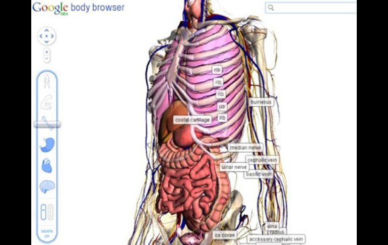 Tecnología | ‘Google Body Browser’ es el nombre de este mapa anatómico Google lanza aplicación que explora el cuerpo humano Las herramientas de este ‘buscador’ hacen posible ir adentrándose por las capas del cuerpo hasta llegar a los organos y huesos Por: SUN 18 de diciembre de 2010 - 17:10 hs Para poder utilizar este nuevo buscador no es necesario instalar ningún plug-in en el navegador. ESPECIAL / CIUDAD DE MÉXICO (18/DIC/2010).- A Google no le basta con explorar las calles, el mar o el cielo, ahora lanza un nuevo buscador en 3D sobre el cuerpo humano, según reporta elpais.es. El portal del diario español señala que "Google Body Browser” presenta en tres dimensiones un cuerpo humano virtual. Con las herramientas de navegación es posible ir adentrándose por capas en los órganos que alberga. "Durante la navegación se puede girar la figura los grados que se desee e ir profundizando a voluntad en la anatomía del ser humano hasta conseguir detalles, con el zum, de un determinado hueso u órgano", informa la nota. Explica que para tener acceso a este nuevo buscador no es necesario instalar ningún plug-in en el navegador, sólo basta que tenga soporte WebGL, el motor gráfico de tres dimensiones para la web. Detalla que WebGL ya va incorporado en las versiones beta de Chrome 9 y Firefox 4. Las herramientas de búsqueda se asemejan a las del Google Maps y también se puede localizar un órgano específico en la ventana de búsquedas. Temas Internet Tecnología Google Lee También Internet Bienestar: Pasos para conservar tu número móvil ¿Por qué debes desactivar las animaciones del sistema en tu celular Android? Plataforma de Hulu llegará a México; esto se sabe Esta es la función que debes apagar en tu celular para ahorrar batería Recibe las últimas noticias en tu e-mail Todo lo que necesitas saber para comenzar tu día Registrarse implica aceptar los Términos y Condiciones