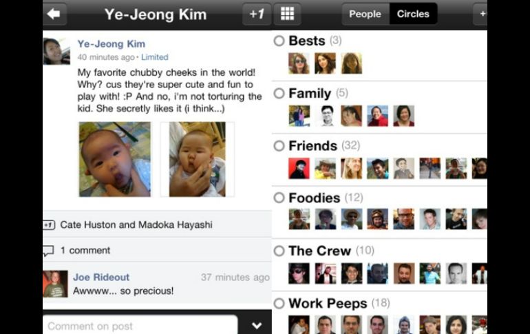 Tecnología | La nueva red social compatible con productos de Apple Google+ para iPhone El principal buscador de internet presenta su aplicación en App Store Por: EL INFORMADOR 20 de julio de 2011 - 02:21 hs Disponible para iPhone 3G, 3GS y 4. ESPECIAL / CIUDAD DE MÉXICO (20/JUL/2011).- El buscador Google hace énfasis en la facilidad de la aplicación para bloquear mensajes no deseados del timeline, ingresar imágenes a una publicación y compartir sólo con ciertos grupos, la app sólo está oficialmente abierta para usuarios de 18 años o más. La aplicación de Google +, la nueva red social del gigante de la web es gratuita y está disponible en la tienda de iTunes, su compatibilidad es con los modelos de iPhone 3G, 3GS y 4. De acuerdo con el portal CNN México, una versión optimizada para móviles, pero utilizada a través de un buscador común, fue lanzada junto con la aplicación de Google+ para Android en la misma fecha en que se estrenó la red social. Sin embargo, el gigante de internet esperó hasta que Apple dio el visto bueno a su aplicación nativa, con sistema operativo iOS que usan los iPhone, para lanzar esta versión en la App Store. Temas Gadgets iPhone Google Apple Redes Sociales Lee También Pancho Barraza se disfraza de vendedor y sorprende a todos en el AKRON ‘Cachorritas Podcast’, las jóvenes de la Mixteca Poblana que transforman paisajes en pantallas verdes reales Taylor Swift dona 100 mil dólares a niña de dos años que lucha contra el cáncer ¿Cuánto cuesta "Mi Primer Puesto de Tacos" Mi Alegría? Recibe las últimas noticias en tu e-mail Todo lo que necesitas saber para comenzar tu día Registrarse implica aceptar los Términos y Condiciones