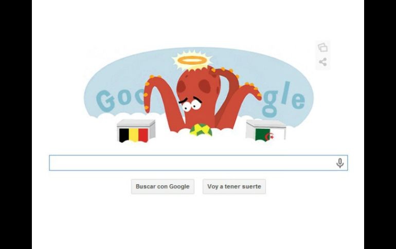Tecnología | El buscador de Internet continúa celebrando la Copa del Mundo 2014 Google recuerda a 'Pulpo Paul' para partido Bélgica contra Argelia El molusco no sabe escoger entre una caja con la bandera de Bélgica y otra con la de Argelia Por: NTX 17 de junio de 2014 - 09:44 hs El fallecido ''Pulpo Paul'' intenta adivinar al ganador del primer partido de Bélgica vs Argelia. ESPECIAL / CIUDAD DE MÉXICO (17/JUN/2014).- Con el fallecido "Pulpo Paul", quien intenta adivinar al ganador del primer partido de Bélgica vs Argelia, Google continúa celebrando La Copa del Mundo 2014, la cual se lleva a cabo en Brasil. Entre nubes, con aureola y con un balón de futbol con los colores de Brasil, el buscador dedica su '' doodle'' al ya fallecido pulpo de origen inglés, quien no sabe escoger entre una caja con la bandera de Bélgica y otra con la de Argelia, equipos del Grupo H que este martes se enfrentarán en el Estadio Mineirão en Belo Horizonte. Paul, fue la mascota que fungió como oráculo para predecir los resultados de la selección alemana de fútbol en justas internacionales en la Eurocopa 2008 y en el Mundial de Fútbol 2010, donde luego también fue requerido para predecir otros resultados. Temas Internet Redes Sociales Mundial Brasil 2014 Doodles Lee También ‘Cachorritas Podcast’, las jóvenes de la Mixteca Poblana que transforman paisajes en pantallas verdes reales México cae ante Corea del Norte en su debut del Mundial Sub-17 Femenil México vs Corea del Sur: EN VIVO, dónde ver el partido por el Mundial Sub-17 femenil Accidente de autobús en Brasil deja 15 muertos Recibe las últimas noticias en tu e-mail Todo lo que necesitas saber para comenzar tu día Registrarse implica aceptar los Términos y Condiciones