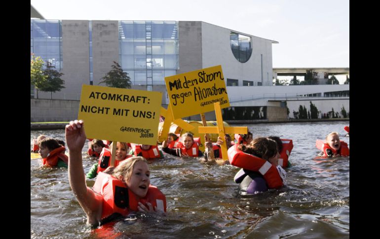 Tecnología | Los activistas procedían de los 16 estados federales alemanes Greenpeace protesta por centrales nucleares en Alemania La organización ecologista está en contra del acuerdo para ampliar la vida de las centrales nucleares en el país europeo Por: EFE 12 de septiembre de 2010 - 13:38 hs Los jóvenes activistas se manifiestan con pancartas frente a la Cancillería. REUTERS / BERLÍN, ALEMANIA (12/SEP/2010).- La organización ecologista Greenpeace organizó hoy en Berlín un acto de protesta contra el acuerdo para ampliar en Alemania la vida de las centrales nucleares, bajo el lema "No queremos pagar el pato de vuestros disparates". En un ambiente festivo y portando pancartas, cerca de 200 jóvenes se lanzaron al río Spree a su paso por el barrio gubernamental y nadaron en barriles transparentes, negros y amarillos (colores identificativos de los partidos de la coalición de conservadores y liberales) junto a la sede de la Cancillería y del Bundestag (Cámara baja). Los jóvenes, según informó Greenpeace, procedían de los 16 estados federales alemanes. "Los políticos no notarán los efectos de su decisión de alargar la vida de las centrales atómicas, pero nosotros sí", declaró a los medios alemanes la joven Stina Hinrichs, de 15 años y procedente de Múnich (sur). Hinrichs añadió que "ninguno de estos políticos vivirá dentro de 40 años, cuando uno de los reactores estalle". El pasado 6 de septiembre la canciller alemana, Angela Merkel, anunció que el Gobierno de coalición de la Unión Cristianodemócrata (CDU) y el Partido Liberal (FDP) acordó ampliar la vida de las 17 centrales nucleares existentes en Alemania por un periodo medio de 12 años. Los reactores atómicos más antiguos permanecerán activos ocho años, mientras que los más modernos lo estarán 14, según el acuerdo que ha enfrentado a los socios de Gobierno durante meses. El anterior Ejecutivo de coalición del Partido Socialdemócrata (SPD) y Los Verdes logró durante su gobierno un acuerdo para que la última de las centrales atómicas en el país se cerrara en 2021. Temas Medio Ambiente Energía Nuclear Greenpeace Recibe las últimas noticias en tu e-mail Todo lo que necesitas saber para comenzar tu día Registrarse implica aceptar los Términos y Condiciones