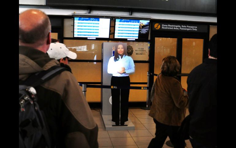 Tecnología | Han instalado dos hologramas en tamaño real Hologramas informan a pasajeros en aeropuerto chileno Han instalado dos hologramas en tamaño real en los que se proyecta la imagen de una persona Por: EFE 22 de agosto de 2012 - 19:24 hs Los hologramas en tamaño real royectan la imagen de una mujer que informa a los pasajeros sobre los artículos prohibidos. EFE / SANTIAGO DE CHILE, CHILE (22/AGO/2012).- El aeropuerto internacional de Santiago de Chile ha instalado dos hologramas en tamaño real en los que se proyecta la imagen de una persona que informa a los pasajeros sobre los artículos prohibidos que no se pueden embarcar, informaron hoy fuentes oficiales. Según indicó en un comunicado la Dirección General de Aeronáutica Civil (DGAC), impulsora de la iniciativa, se trata de un proyecto pionero en América Latina, que se evaluará en el aeropuerto capitalino durante seis meses antes de replicarlo en el resto del país. Los hologramas emplean el sistema de la telepresencia para proyectar en tamaño real la imagen de una mujer sobre una superficie de acrílico recortada con forma de silueta. A través de un sistema informático que mezcla las imágenes y el sonido, la funcionaria virtual informa durante un minuto a los pasajeros antes de pasar el control de seguridad sobre los objetos y sustancias que no se pueden embarcar. La DGAC ha instalado dos sistemas holográficos en el aeropuerto de Santiago, uno en el terminal nacional y otro en el internacional, que también entrega la información en inglés. Los hologramas han sido colocados en puntos estratégicos del recinto para que puedan ser observados tanto por las personas que van a viajar como por sus acompañantes o quienes transiten por el aeropuerto, precisaron fuentes del organismo. El secretario general de la DGAC, Pablo Ortega, consideró que esta nueva tecnología permitirá agilizar el control de seguridad y aumentará los estándares de seguridad de la aviación civil chilena. "El desarrollo de este sistema permitirá generar ahorros considerables de tiempo en la gestión de chequeo de pasajeros; descongestionar los espacios destinados a acumular los elementos requisados y disminuir los gastos que demanda la eliminación definitiva de ellos", señaló Ortega. Temas Gadgets Chile Aeropuertos Recibe las últimas noticias en tu e-mail Todo lo que necesitas saber para comenzar tu día Registrarse implica aceptar los Términos y Condiciones