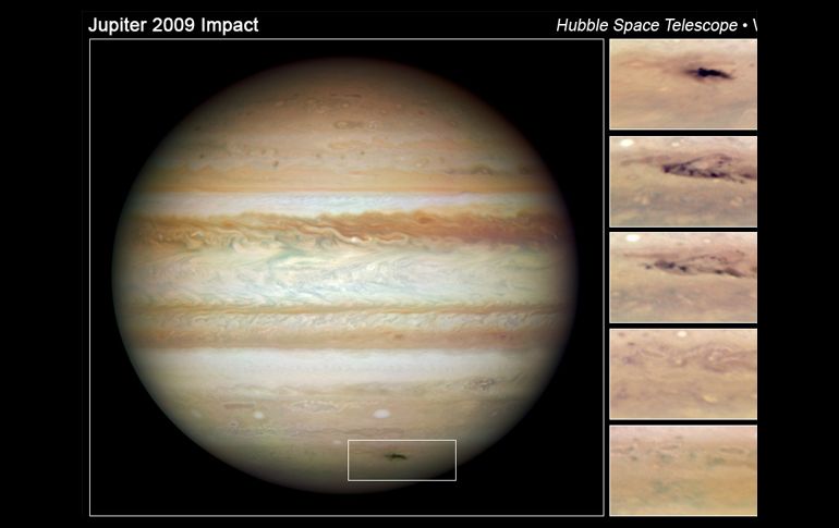 Tecnología | El telescopio Hubble confirmó el impacto en el planeta Júpiter con 'cicatriz' del tamaño de océano Pacífico La marca fue detectada por un astrónomo aficionado australiano en julio de 2009 Por: EFE 4 de junio de 2010 - 15:00 hs La serie de imágenes con acercamientos se tomaron entre el 23 de julio y el 3 de noviembre de 2009. ESPECIAL / LOS ANGELES, ESTADOS UNIDOS (04/JUN/2010).- Hace casi un año la superficie de Júpiter recibió el impacto de un objeto que dejó sobre su superficie una cicatriz del tamaño del océano Pacífico, reveló un estudio publicado por la revista The Astrophysical Journal Letters. La marca fue detectada por un astrónomo aficionado australiano en julio de 2009 y su existencia fue confirmada por otros observatorios y después por el telescopio espacial Hubble. El golpe sufrido por la superficie de Júpiter, el mayor planeta del sistema solar, fue igual a la explosión de varios miles de bombas atómicas de tamaño medio, indicó un comunicado difundido por la NASA en su sitio de internet. Según los astrónomos, aparentemente el impacto fue causado por un asteroide de unos 500 metros de diámetro y las imágenes transmitidas por el Hubble son las primeras que muestran de manera directa sus consecuencias sobre la superficie de un planeta. Pero no se trata de un acontecimiento astronómico desusado, pues desde el comienzo de la astronomía se había observado que el planeta sufría el impacto de objetos cósmicos. Además, en 1995 los científicos detectaron la caída de más de 20 trozos del cometa P/Shoemaker-Levy 9 (SL9) sobre la superficie de Júpiter. En un comunicado, la NASA indicó que el último impacto y la marca de otros sobre la superficie revelan que Júpiter es un sitio agitado en el cual pueden producirse hechos imprevistos. "Este solitario suceso nos tomó por sorpresa y solo podemos ver lo que ocurrió después del impacto", señaló Heidi Hammel, del Instituto de Ciencias Espaciales que encabezó el estudio sobre el impacto. "Afortunadamente, tenemos las observaciones del Hubble hechas en 1994" lo cual ha permitido realizar comparaciones, añadió. Esos análisis pusieron de manifiesto que el halo de la colisión desapareció rápidamente lo que, según los científicos, constituye una prueba de que se trató de un asteroide sólido y no de un cometa. Además, la forma alargada del sitio de impacto demuestra que el asteroide cayó de manera oblicua. Según la NASA, un análisis de las posibles órbitas del asteroide realizado por científicos encabezados por Agustín Sanchez-Lavéga, de la Universidad del País Vasco (España) , indicó que probablemente el objeto cósmico provino de la llamada familia Hilda, un cinturón de asteroides cercano a Júpiter. Leer artículo original (en inglés): NASA Imágenes de Júpiter tomadas por el Hubble Temas Astronomía Júpiter Planetas Lee También ¿Cuál es la mejor hora para ver la lluvia de estrellas HOY en México? ¿Cuándo y cómo observar la próxima lluvia de estrellas en México? Lluvia de estrellas Dracónidas 2025: Fecha y horario para verla en su punto máximo En esta fecha podrás ver la superluna de la Cosecha desde México Recibe las últimas noticias en tu e-mail Todo lo que necesitas saber para comenzar tu día Registrarse implica aceptar los Términos y Condiciones
