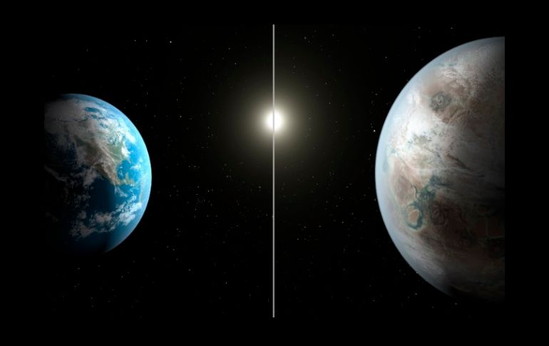 Tecnología | El Kepler-452b se encuentra a mil 400 años luz de la humanidad La NASA halla un planeta ''primo'' de la Tierra La órbita y las condiciones del terreno son similares a las de nuestro planeta, no obstante tiene una atmósfera más densa por tener muchos volcanes activos Por: EFE 23 de julio de 2015 - 12:11 hs WASHINGTON, ESTADOS UNIDOS (23/JUL/2015).- La Agencia Nacional de Aeronáutica y el Espacio de Estados Unidos (NASA) anunció el hallazgo del primer planeta que orbita en la zona habitable de una estrella similar al Sol, lo que lo convierte en un sólido candidato para albergar vida y en un "primo" de la Tierra. El Kepler-452b fue detectado por el telescopio espacial Kepler, que analiza cambios en la intensidad de la energía emitida por una estrella, considerando frecuencia y reducción de luminosidad, para confirmar la existencia de planetas. Jon Jenkins, jefe de análisis de datos de la misión Kepler, explicó en rueda de prensa que el planeta es un 60 % más grande que la Tierra, por lo que la gravedad en su superficie sería dos veces a la de la nuestro planeta. No obstante, su tamaño permite a los científicos adelantar que el planeta es rocoso, probablemente con una atmósfera más densa y con una importante concentración de volcanes activos. El planeta recibe un 10% más energía de su estrella que la Tierra, ya que el astro está en un estadio más avanzado de su vida, por lo que emite más brillo y es más grande. La NASA lo ha calificado como "un primo, más grande y más viejo, de la Tierra". "Este es hasta ahora el planeta que más se asemeja a la Tierra y algo que podemos llamar hogar", explicó uno de los científicos del programa. La órbita alrededor de su estrella es bastante similar a la de la Tierra, ya que el Kepler-452b completa su año en 385 días. No obstante, el "primo" de la Tierra se encuentra a mil 400 años luz. La NASA considera como la zona habitable de un sistema solar la franja en la que la temperatura permitiría la existencia de agua en estado líquido en un planeta. Hasta el momento, el más prometedor hallazgo de un planeta parecido a la Tierra era el Kepler-186f, con un tamaño muy parecido a nuestro planeta, pero orbitando una estrella enana, mucho menos cálida que el Sol. Temas NASA Espacio Astronomía Tierra Lee También Estos son los nuevos datos revelados del cometa 3I/ATLAS ¿Cuál es la mejor hora para ver la lluvia de estrellas HOY en México? ¿Cuándo y cómo observar la próxima lluvia de estrellas en México? Lluvia de estrellas Dracónidas 2025: Fecha y horario para verla en su punto máximo Recibe las últimas noticias en tu e-mail Todo lo que necesitas saber para comenzar tu día Registrarse implica aceptar los Términos y Condiciones