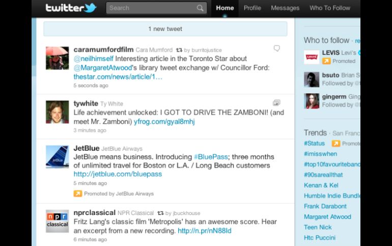 Tecnología | Promociones al momento La nueva apuesta de Twitter es la publicidad La red social presenta los ''tweets promocionados''; por ahora pocas empresas inician con ellos en la nueva aventura del sitio web Por: EL INFORMADOR 28 de julio de 2011 - 19:27 hs Los microblogs publicitarios son la nueva manera de promover un producto en la red social. ESPECIAL / GUADALAJARA, JALISCO (28/JUL/2011).- Han sido varios los intentos para colgar publicidad dentro del portal de microblogs Twitter, el más reciente fue presentado este jueves por la compañía fundada por Jack Dorsey, que ahora abre las puertas a los ''tweets promocionados'' los cuales podrán verse en el timeline. En un comunicado, el portal explica que sólo algunas empresas seleccionadas podrán hacer uso de ellos, los ''tweets'' serán mandados a las cuentas que sigan el Twitter oficial de las firmas que han pagado por la publicidad, entre los que destacan: Best Western, Dell, Gatorade, Groupon, HBO, JetBlue, LivingSocial, Xbox de Microsoft, Red Bull, Sephora, Starbucks, la Cumbre Entertainment "50/50", TNT y Virgin America. Así mismo informan que ''durante esta fase, también se puede ver los de las organizaciones no lucrativas como la Fundación Make-A-Wish, Room to Read, La Cruz Roja Americana y Water.org''. El mensaje puede ser identificado por la leyenda ''Promocionado por'' seguido por la organización que lo patrocina. Visualmente se destaca por anteponer un icono: una flecha blanca dentro de un cuadrado amarillo. Los microblogs publicitarios aparecerán en la parte superior de la línea del tiempo al momento en que se ingrese a la cuenta, sin embargo, los ''tweets'' se desplazaran de la misma manera que un ''tweet'' normal en cuanto los contactos empiecen a actualizar sus estados. Cabe destacar que también se pueden distinguir esta categoría de ''tweets'' y cuentas de Twitter en las secciones de ''A quién seguir'' y dentro de la lista de los ''Temas más comentados'' o ''Trendig topics''. El comunicado de Twitter concluye asegurando que su filosofía es enriquecer la experiencia del usuario en la red. Temas Internet Twitter Redes Sociales Lee También Internet Bienestar: Pasos para conservar tu número móvil Esta es la verdadera identidad del "Juan Gabriel" captado en París "Streamer" transmite su parto en vivo y causa revuelo en redes sociales Así puedes comenzar tu ahorro en el Banco del Bienestar Recibe las últimas noticias en tu e-mail Todo lo que necesitas saber para comenzar tu día Registrarse implica aceptar los Términos y Condiciones