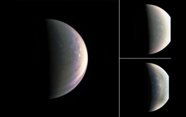 CIUDAD DE MÉXICO (05/SEP/2016).- Imágenes de la actividad de sistemas de tormentas en el Polo Norte de Júpiter, distintas a todo lo visto anteriormente de ese planeta, fueron enviadas por la nave espacial Juno de la NASA.La descarga de seis megabytes de datos recogidos durante las seis horas de tránsito desde el polo norte al sur de Júpiter, se prolongó durante un día y medio, informó la Administración Nacional de la Aeronáutica y del Espacio (NASA, por sus siglas en inglés) en su portal de Internet.Agregó que aunque el análisis está en proceso, algunos descubrimientos ya se hacen visibles.Juno tuvo éxito en el primero de sus 36 sobrevuelos orbitales, el pasado 27 de agosto, en el que pasó a unos 4.2 kilómetros por encima de las nubes arremolinadas de ese cuerpo celeste.Scott Bolton, investigador principal de Juno en el Instituto de Investigación del Suroeste en San Antonio indicó que "es más azul en color que otras partes del planeta, y hay gran cantidad de tormentas".Asimismo resaltó que "no hay ninguna señal de las bandas latitudinales o cinturones que estamos acostumbrados a ver -- esta imagen apenas es reconocible como Júpiter. Estamos viendo señales de que las nubes tienen sombras, lo que indica que se encuentran a una altitud superior a las demás características"."Saturno tiene un hexágono en el polo norte", dijo Bolton. "No hay nada ni de lejos en Júpiter que se le asemeje. El planeta más grande de nuestro sistema solar es verdaderamente único. Tenemos 36 sobrevuelos más para estudiar hasta qué punto realmente es singular", apuntó.De acuerdo con la NASA, de manera simultánea a JunoCam que ha tomado fotografías durante el sobrevuelo, los ocho instrumentos científicos de Juno recogieron datos.El Jovian Infrared Auroral Mapper (JIRAM), suministrado por la Agencia Espacial Italiana, adquirió algunas imágenes notables de las regiones del polo norte y del polo sur en longitudes de onda infrarrojas.Alberto Adriani, coinvestigador de JIRAM en el Instituto de Astrofísica y Planetología SPAZIALI, Roma afirmó "estas primeras imágenes infrarrojas de los polos norte y sur de Júpiter están revelando puntos calientes que nunca antes se habían visto"."Si bien sabíamos que podrían revelar una aurora en el polo sur del planeta, nos quedamos sorprendidos al verla por primera vez. Parece ser muy brillante y bien estructurada. El alto nivel de detalle en las imágenes nos dirá más acerca de la morfología y la dinámica de la aurora", subrayó.Entre el conjunto de datos más singulares recogidos por Juno durante su primera barrida científica por Júpiter están los recogidos por el Experimento de detección de Ondas de Radio y Plasma (Waves), que registra las transmisiones de sonido que emanan del planeta.Estas emisiones de radio de Júpiter se conocen desde los años 50, pero nunca habían sido analizadas desde un punto de vista tan cercano."Júpiter está hablando con nosotros de una manera en la que sólo los mundos gaseosos gigantes pueden", señaló Bill Kurth, coinvestigador del instrumento Wavews de la Universidad de Iowa, Iowa City."Las ondas detectan la firma de emisión de las partículas energéticas que generan las masivas auroras que rodean el polo norte de Júpiter. Estas emisiones son las más fuertes en el sistema solar. Ahora vamos a tratar de averiguar de dónde proceden los electrones que las generan", puntualizó el científico.
