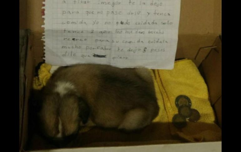 CIUDAD DE MÉXICO (05/SEP/2017).- A través de redes sociales fue difundida la fotografía de una cachorra que fue dejado en la casa de una mujer que se dedica a cuidar a los animales, aparentemente por una pequeña que dejó una carta en la que explica las razones por las que ya no puede hacerse cargo del animal, en Tijuana, Baja California.Según el mensaje, la niña tuvo que dejar a su mascota porque sus papás ya no le permitían tenerla."Hola me llamo Jasmin y ella es 'Cristalita', te la tuve que dejar en tu puerta por que me dijeron que tu cuidas animales que no tienen casa y ella ya no va a tener por que mis papas no la quieren por que no es original (sic)", se lee en la carta.La autora de la carta indica que tenía interés en seguir haciéndose cargo de su mascota pero "yo no puedo cuidarla, solo tengo 7 años y no me dan mucho de recreo para su comida, cuidala mucho por favor (sic)".La niña que dejó al animalito intentó hacerse cargo de la perrita hasta el último momento "Te dejo 8 pesos y dile que la quiero".De acuerdo con las personas que dieron a conocer el caso, la perrita Cristalita ya está recibiendo cuidados, y cuando se encuentre en mejores condiciones será dada en adopción.