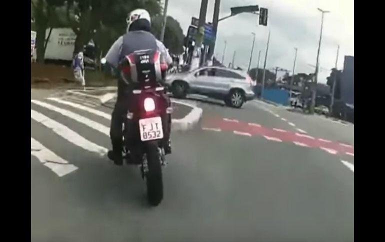 GUADALAJARA, JALISCO (01/DIC/2016).- Las mejores persecuciones del cine ya tienen una competencia de la vida real: gracias a la cámara instalada en su motocicleta, un policía brasileño grabó cinco minutos de su persecución a un presunto ladrón que huía en otra moto.La trepidante escena muestra cómo el agente y otro policía persiguen al sospechoso por calles de la metrópoli de Sao Paulo, a veces en sentido contrario y con alto riesgo para los involucrados.La escena fue publicada en varios sitios de Internet y termina cuando el perseguido choca contra un vehículo, sin que en apariencia sufriera lesiones graves. EL INFORMADOR / IVÁN GONZÁLEZ