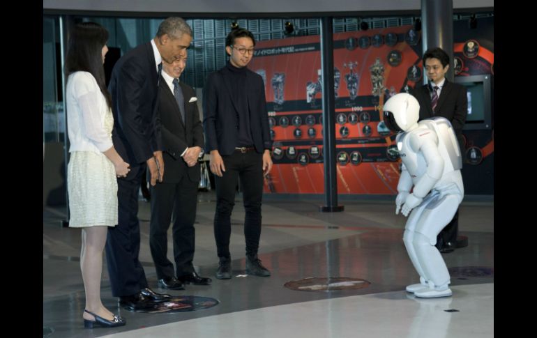 Tecnología | El presidente de EU estuvo con 'Asimo' durante su visita a un museo de ciencia Obama juega futbol con un robot japonés El presidente de EU estuvo con 'Asimo' durante su visita a un museo de ciencia Por: EFE 24 de abril de 2014 - 07:25 hs TOKIO, JAPÓN (24/ABR/2014).- El presidente de EU, Barack Obama, jugó hoy al futbol con el popular robot japonés "Asimo" durante su visita a un museo de ciencia y tecnología en Tokio, la primera parada de su gira por Asia. Obama calificó de "bastante impresionante" el pase que el conocido autómata fabricado por Honda le hizo con una certera patada, aunque también reconoció que le asustó un poco el robot por parecerse demasiado a una persona real. Como parte de su agenda, el presidente estadounidense también conoció de cerca aspectos más tradicionales de la cultura y recorrió junto a la embajadora de EU en Japón, Caroline Kennedy, el recinto sintoísta, construido en 1912 en honor del emperador Meiji (bisabuelo del actual jefe de Estado nipón). Tras atender las explicaciones del sumo sacerdote del santuario, Obama escribió un deseo sobre una "ema", una tableta de madera sagrada, que luego colgó en el recinto como manda la tradición sintoísta, que sostiene que los mensajes pueden ser así leídos por las deidades antes de ser concedidos. En el mismo recinto tuvo lugar una exhibición de "yabusame", el tiro con arco a caballo tradicional de Japón. La jornada del presidente en Tokio concluyó con un banquete en su honor celebrado en el palacio imperial. Al convite, que incluía un menú de cocina francesa donde se sirvió cordero, fueron invitados 169 comensales, lo que supone el mayor banquete de Estado celebrado en Japón en las tres últimas décadas. La Agencia de la Casa Imperial justificó semejante despliegue por lo duradero de las relaciones entre los dos países. Obama lució un esmoquin, al igual que el emperador, Akihito, que le recibió a la entrada del palacio junto a la emperatriz Michiko. Ataviada con un kimono beige que mereció los halagos del presidente estadounidense, que le dijo que estaba "muy elegante". Obama concluye su visita de Estado a Japón mañana, cuando partirá a Corea del Sur. El 26 de abril viajará a Malasia y el 28 a Filipinas, para partir de regreso a Washington el martes 29. Temas Barack Obama Japón Robots Robótica Lee También Japón acaba de nombrar a una inteligencia artificial como líder político y crea polémica Loret de Mola filtra presunto motivo de viaje a Tokio de "Andy" López Inauguran el primer centro comercial de robots en el mundo Sensei Rojinegro Recibe las últimas noticias en tu e-mail Todo lo que necesitas saber para comenzar tu día Registrarse implica aceptar los Términos y Condiciones