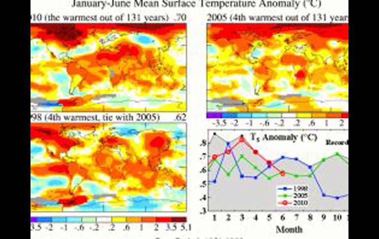 Tecnología | Análisis de la NASA comparan temperaturas registradas desde 1880 hasta 2010 Primera mitad de 2010 rebasó récord de calor Estimaciones actuales prevén que 2010 será el año más caluroso de la historia Por: SUN 13 de julio de 2010 - 16:06 hs El calor se incrementa a pesar que la irradiación solar ha sido de las más bajas. CLIMATEPROGRESS.COM / CIUDAD DE MÉXICO (13/JUL/2010).- Análisis comparativos de las temperaturas registradas desde 1880 hasta 2010 demostraron que el calor que hubo en la primera mitad de este año rebasó el récord que la agencia espacial estadounidense ( NASA) conocía. "Estos récords de temperatura son la evidencia más poderosa del calentamiento causado por el hombre", ya que se produce cuando existe una mínima cantidad de irradiación solar hasta ahora presentada, que debería propiciar un enfriamiento", aseguró la NASA en un estudio. Timothy Chase, ingeniero de la NASA, elaboró una hoja de cálculo utilizando los datos del Instituto Goddard de Estudios Espaciales e información de la NASA, donde detectó el incremento de temperatura. De acuerdo con otro estudio de la Universidad de Standford publicado en la revista Geophysical Research Letters concluyó que las temperaturas extremas podrían ser frecuentes en Estados Unidos hasta 2039, lo que representaría un riesgo grave para la agricultura y la salud humana. "En los próximos 30 años, podríamos ver un aumento en las olas de calor como la que está ocurriendo en el este de Estados Unidos o el tipo que se extendió por toda Europa en 2003 que causó decenas de miles de muertes", dijo Noah Diffenbaugh, profesor asistente de ciencias del medio ambiente del sistema de la Tierra de la Universidad de Stanford, "Estas ondas de calor severas puso en riesgo a los principales cultivos, como maíz, soya, algodón y uva de vinificación, causando una reducción significativa en los rendimientos", dijo el también becario del centro en Woods Stanford Instituto para el Medio Ambiente. El estudio GRL tomó dos años para completarse y está co-escrito por Moetasim Ashfaq, ex becario de postdoctorado de Stanford ahora en el Laboratorio Nacional Oak Ridge. El estudio se basó en un informe reciente de la NASA, que llegó a la conclusión de que la década anterior, enero 2000-diciembre 2009, fue la más caluroso de la historia. Lo que viene ¿El Niño o La Niña? Aunque las estimaciones actuales prevén que 2010 será el año más caluroso de la historia, la Administración Nacional Oceánica y Atmosférica (NOAA, por sus siglas en inglés) dijo que "las condiciones de La Niña tienden a desarrollarse durante julio a agosto 2010." Si el episodio de La Niña viene rápida y profunda (como en 1998 y 2007) podría cambiar todas las expectativas sobre el calentamiento global, ya que reduciría las temperaturas en la Tierra. Hasta ahora junio empató como el tercer mes más caluroso registrado por la NASA y un estudio de la Universidad de Rutgers sobre el espesor de la nieve calculó un nuevo récord de la capa más fina que cubría el hemisferio norte durante junio, que además podría ser una tendencia a largo plazo. Las ondas de calor y torrenciales lluvias que azotaron distintos países puso en alerta a las autoridades climáticas y de cada país para implementar acciones para frenar el cambio climático, a 159 días para que inicie la Cumbre sobre Cambio Climático en Cancún. Temas Medio Ambiente NASA Calentamiento Global Temporada de calor Recibe las últimas noticias en tu e-mail Todo lo que necesitas saber para comenzar tu día Registrarse implica aceptar los Términos y Condiciones