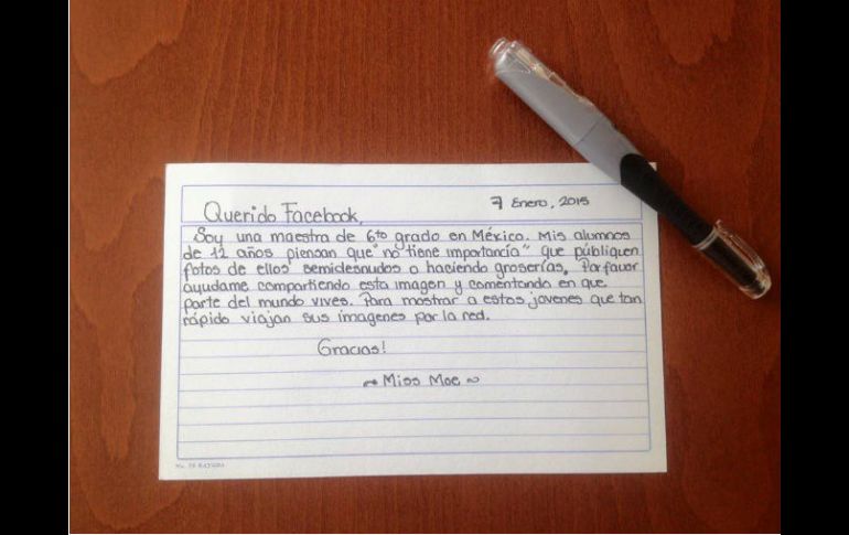 Tecnología | Dice que sus alumnos le pierden importancia a compartir fotos comprometedoras Profesora pide a Facebook crear conciencia sobre publicaciones de niños Dice que sus alumnos le pierden importancia a compartir fotos comprometedoras Por: EL INFORMADOR 11 de marzo de 2015 - 07:38 hs La imagen ha sido compartida más de 13 mil veces en tan sólo cuatro días de ser publicada. FACEBOOK / Verónica Palestino Leal GUADALAJARA, JALISCO (11/MAR/2015).- Una profesora mexicana ha publicado en su perfil de Facebook una nota en la que pide a esta red social crear conciencia sobre las publicaciones que hoy en día hacen los niños. Su publicación es una fotografía de una nota escrita el pasado 07 de marzo en la que se puede leer: "Querido Facebook, soy una maestra de sexto grado en México, mis alumnos de 12 años piensan que no tiene importancia que publiquen fotos de ellos semidesnudos o haciendo groserías". Para crear conciencia, ella pide compartir esa fotografía para demostrar lo fácil que puede viralizar un contenido en esta red social. La fotografía hasta el momento ha sido compartida más de 13 mil veces en sólo cuatro días de ser publicada. Cabe mencionar, que Facebook tiene como requisito en el momento de crear una cuenta contar con una edad mínima de 13 años, sin embargo esta cláusula poco se respeta. De lo anterior, la red social ha buscado alternativas para que los menores no tengan que mentir cuando dan de alta una nueva cuenta, entre las opciones figuran una supervisión paterna en la que los niños pueden conectarse a través de las cuentas de sus padres pero esto aún no se ha concretado. EL INFORMADOR / CAROLINA QUINTANILLA Temas Internet Niños Facebook Redes Sociales Lee También Sociales: Che Eguiarte 40’s party Lo que el caso Omar Bravo nos obliga a mirar La generación ansiosa Continúa la entrega de tarjetas Yo Jalisco Apoyo para el Transporte este 9 de octubre Recibe las últimas noticias en tu e-mail Todo lo que necesitas saber para comenzar tu día Registrarse implica aceptar los Términos y Condiciones
