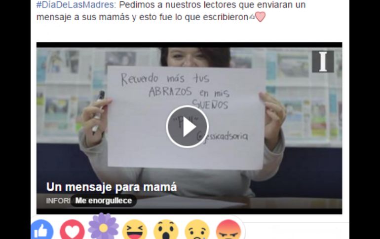 Tecnología | La nueva reacción temporal está disponible este Día de las Madres ¿Qué significa la nueva flor morada de Facebook? El emoji de reacción significa ''Me enorgullece'', y está disponible de manera temporal Por: EL INFORMADOR 10 de mayo de 2016 - 18:25 hs ¿Será este nuevo emoji el inicio de más reacciones conmemorativas? ESPECIAL / GUADALAJARA, JALISCO (10/MAY/2016).- Y tú, ¿cuántas flores has 'dedicado' en Facebook en este Día de las Madres? Con motivo de la celebración, la red social activó un nuevo emoji. Se trata de la flor morada de 'Me enorgullece', y es la primera vez que aparece una reacción temporal. La novedad fue activada el domingo 8 de mayo en más de 80 países que ese día celebran el Día de la madres (Estados Unidos, entre ellos), y duró alrededor de 24 horas activa. En México, esta celebración se conmemora el 10 de mayo, y desde la tarde/noche del 9, la opción estuvo disponible para reaccionar a todo lo que tenga que ver con el Día de las Madres. Puede que esta nueva reacción haya sido introducida de manera experimental, pero habrá que ver si se incorpora algo similar para celebraciones internacionales como el Día del Libro, Día del Padre, Navidad, etcétera. Los botones alternativos al 'Me gusta' comenzaron a popularizarse en febrero, después de que Facebook revisa los comentarios en las publicaciones de los usuarios, además de los emojis que más utilizan, y así elegir los más comunes: 'Me encanta', 'Me divierte', 'Me asombra', 'Me entristece' y 'Me enoja'. Temas Internet Día de las Madres Facebook Redes Sociales Lee También Continúa la entrega de tarjetas Yo Jalisco Apoyo para el Transporte este 9 de octubre Tlaquepaque anuncia el XV Festival de Muertos 2025 con temática mundialista; conoce las fechas Se filtran nuevos ADIDAS diseñados por Bad Bunny (FOTOS) Beca Benito Juárez: ¿Cuál es el último día para realizar el registro? Recibe las últimas noticias en tu e-mail Todo lo que necesitas saber para comenzar tu día Registrarse implica aceptar los Términos y Condiciones