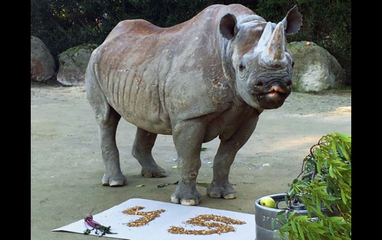 Tecnología | Al ejemplar de mayor edad en Norteamérica se le celebró con un pastel y copos de avena Rinoceronte negra cumple 45 años en San Francisco A Elly, el ejemplar de mayor edad en Norteamérica se le celebró con un pastel y copos de avena Por: AP 1 de enero de 2016 - 20:18 hs Ha parido 14 crías, con lo que ayudó a conservar una especie en grave peligro de extinción. AP / SAN FRANCISCO, ESTADOS UNIDOS (01/ENE/2016).- El zoológico de San Francisco festejó el 45to cumpleaños de la rinoceronte negra de mayor edad en Norteamérica con un pastel especial de copos de avena y melaza. Se desconoce la fecha exacta del nacimiento de Elly, ya que nació en su hábitat natural, pero ha vivido en el zoológico desde abril de 1974. Sus cuidadores le prepararon el viernes una "alimentación dulce" de avena y melaza que formaba el número 45, dijo Nancy Hayden Crowley, portavoz de la institución. Elly ha parido 14 crías, con lo que ayudó a conservar una especie en grave peligro de extinción que antes de 1960 sumaba 200 mil ejemplares en diversas partes de África. En la actualidad esa cifra ha disminuido a entre tres mil y cinco mil debido a la cacería furtiva por sus cuernos, dijo Jim Nappi, curador del zoológico. En algunas culturas los cuernos son muy apreciados para remedios de medicina tradicional y como mangos decorativos en dagas. Los rinocerontes negros suelen vivir entre 16 y 20 años en su ambiente natural. Temas Medio Ambiente Cumpleaños Animales en peligro de extinción Animales Recibe las últimas noticias en tu e-mail Todo lo que necesitas saber para comenzar tu día Registrarse implica aceptar los Términos y Condiciones