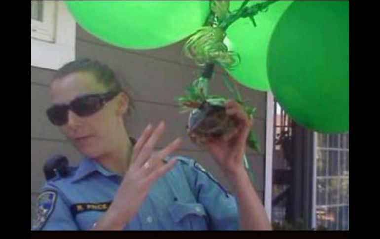 Tecnología | Chanelle Wright y sus vecinos encontraron a la tortuga en Oceanside Tortuga pegada a globos flota sobre ciudad de California Las autoridades intentan determinar quién le pegó los globos Por: AP 22 de agosto de 2012 - 09:06 hs La tortuga no resultó lesionada informo la sociedad protectora de animales. ESPECIAL / CALIFORNIA, ESTADOS UNIDOS (22/AGO/2012).- Las autoridades intentan determinar quién le pegó globos a una tortuga en su caparazón, lo que hizo que el animal se elevara sobre una ciudad californiana, según la Sociedad Defensora de los Animales. Chanelle Wright dijo al canal de televisión KGTV-TV que ella y sus vecinos encontraron a la tortuga, pegada a los globos verdes y azules y atrapada en la copa de un eucalipto en la localidad de Oceanside. Wright dijo que llamó a la Sociedad Defensora y a los bomberos, que llegaron una hora después. Estos estaban a punto de rescatar al animal valiéndose de una escalera plegable cuando una racha de viento lo depositó en tierra. Los empleados de la Sociedad dijeron que mantienen bajo observación a la tortuga, que no resultó lesionada, mientras investigan el caso. Wright dijo haber quedado horrorizada por el abuso contra el animal y piensa adoptarlo si nadie lo reclama. Temas Medio Ambiente Tortugas Maltrato a animales Lee También ¿Quiénes son los rehenes israelíes liberados con vida? Trump ve oportunidad de firmar la paz con Irán, pero "primero Rusia" Rehenes israelíes y prisioneros palestinos son liberados en Gaza Hamás revela nombres de los cadáveres que entregará a Cruz Roja en Gaza Recibe las últimas noticias en tu e-mail Todo lo que necesitas saber para comenzar tu día Registrarse implica aceptar los Términos y Condiciones