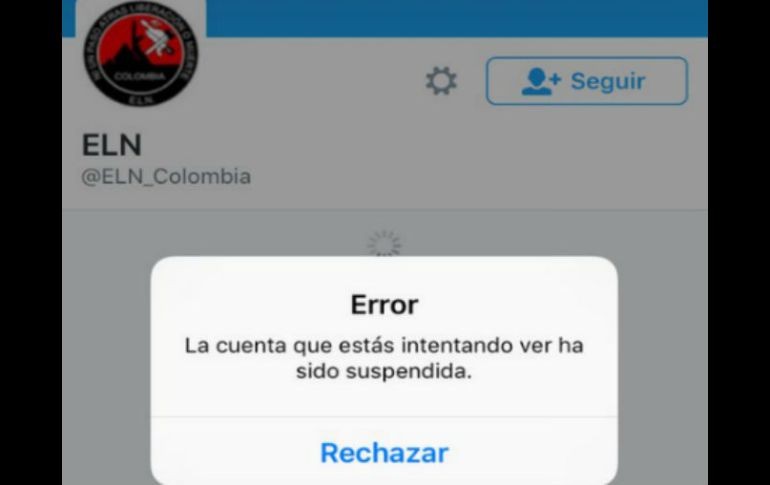 Tecnología | Luego de que anunciaron que realizarían un paro armado en Colombia Twitter supende cuenta del ELN El gobierno de Santos sostiene negociaciones preliminares de paz con el ELN desde hace dos años sin una tregua en el terreno Por: AFP 13 de febrero de 2016 - 13:52 hs El Comando Central del ELN confirmó el viernes su convocatoria a un paro. TWITTER / Especial BOGOTÁ, COLOMBIA (13/FEB/2016).- La cuenta de la guerrilla del Ejército de Liberación Nacional de Colombia ( ELN) en la red social Twitter fue suspendida este sábado tras anunciar un paro armado que comenzaría este domingo. "Cuenta suspendida. Esta cuenta ha sido suspendida", dicen las cuentas de @ELN_RANPAL y @ELN_Colombia que el viernes habían dado a conocer un comunicado sobre la realización de un paro que durará 72 horas. "Podemos suspender una cuenta si se ha informado a nosotros como una violación de nuestras reglas en torno a los abusos", indica la información de Twitter y recuerda que una de sus reglas prohíbe "el envío de amenazas a otros o hacerse pasar por otras cuentas". El Comando Central del ELN confirmó el viernes en su cuenta en Twitter su convocatoria a un paro armado desde el 14 al 17 de febrero, en memoria del sacerdote Camilo Torres, icono rebelde abatido hace 50 años por militares. Luego del anunció del grupo rebelde el presidente Juan Manuel Santos indicó que la fuerza militar "está totalmente preparada para este supuesto paro armado. Saben muy bien qué hacer". El gobierno de Santos sostiene negociaciones preliminares de paz con el ELN desde hace dos años sin una tregua en el terreno. Las Fuerzas Militares se encuentran en "máxima alerta" por nuevas acciones violentas esperadas estos días, cuando se conmemora además la muerte de otros dos guerrilleros emblemáticos, los también sacerdotes Domingo Laín (20 de febrero de 1974) y Manuel Pérez, "El Cura Pérez" (14 de febrero de 1998). Temas Internet Colombia Twitter ELN Redes Sociales Lee También Bad Bunny permanece sentado durante "God Bless America" y enciende las redes Alcalde de Tulum anuncia acceso libre a playas, pero sin alimentos ni bebidas ¿Dónde ver EN VIVO el partido amistoso México vs Colombia? Internet Bienestar: Pasos para conservar tu número móvil Recibe las últimas noticias en tu e-mail Todo lo que necesitas saber para comenzar tu día Registrarse implica aceptar los Términos y Condiciones