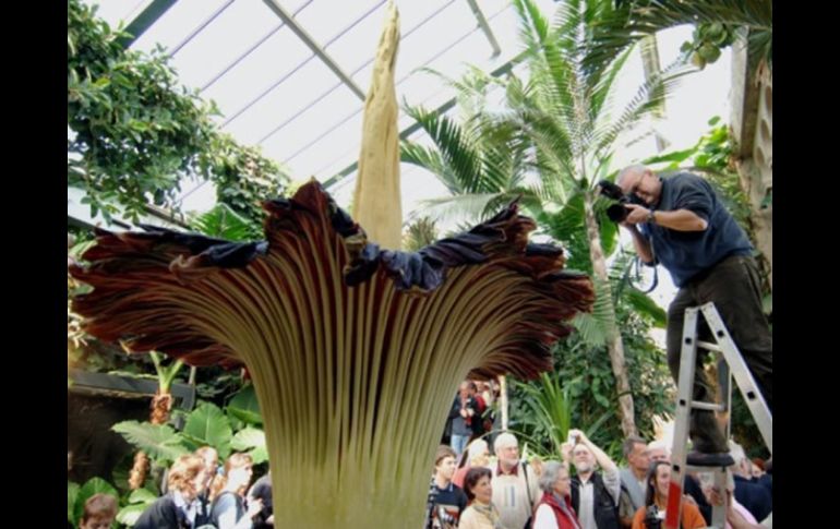 Tecnología | Alcanzó los 1.99 metros de altura y 1.26 metros de diámetro Un ejemplar de ''flor cadáver'' florece en Berlín Un ejemplar de Amorphophallus titanum puede verse hoy por último día en el Jardín Botánico de Berlín antes de que marchite Por: EFE 16 de mayo de 2011 - 15:02 hs La floración de la planta es difícil de pronosticar, por lo que resulta todo un espectáculo botánico, que dura sólo tres días. ESPECIAL / BERLÍN, ALEMANIA (16/AY/2011).- Un ejemplar de Amorphophallus titanum, conocida también como "flor cadáver" por el fétido olor que la caracteriza, puede verse hoy por último día en el Jardín Botánico de Berlín antes de que marchite. La floración del "falo amorfo titánico", una planta originaria de las selvas tropicales de Sumatra (Indonesia) y descubierta en 1878, es difícil de pronosticar, por lo que resulta todo un espectáculo botánico, que además dura tan sólo tres días. Forma un tubérculo subterráneo que puede llegar a pesar 100 kilos, puede florecer pasados unos años y llegar a alcanzar hasta los tres metros de altura. La "flor cadáver" del Jardín Botánico de Berlín floreció finalmente el pasado sábado, una semana después de lo previsto por los expertos, y alcanzó los 1.99 metros de altura y 1.26 metros de diámetro. Sólo el primer día desprendió su característico olor intenso a carne podrida, ya que a medida que se vuelve a cerrar la hoja que envuelve la inflorescencia -a partir del segundo día-, el hedor disminuye. La función de su desagradable aroma no es otra que la de atraer insectos polinizadores, generalmente moscas, que acuden engañadas confundiendo el hedor de la planta con cadáveres de animales. Si la inflorescencia no es polinizada, la planta por regla general sigue viviendo, mientras que si da frutos -que tardan unos ocho meses en madurar- acostumbra a morir, ya que en el proceso de formación de las semillas, la Amorphophallus titanu queda muy debilitada. El ejemplar del Jardín Botánico de Berlín, que ha atraído a muchos curiosos, no será polinizado artificialmente, por lo que se prevé que continuará viviendo. Temas Alemania Curiosidades y absurdos Plantas Lee También ¿Cuáles son los beneficios de tomar jugo de betabel y cómo se prepara? ¿Qué frutas pueden comer los perros? Revive con la flor de muertos: beneficios del té de cempasúchil Estos son algunos remedios caseros para dormir mejor Recibe las últimas noticias en tu e-mail Todo lo que necesitas saber para comenzar tu día Registrarse implica aceptar los Términos y Condiciones