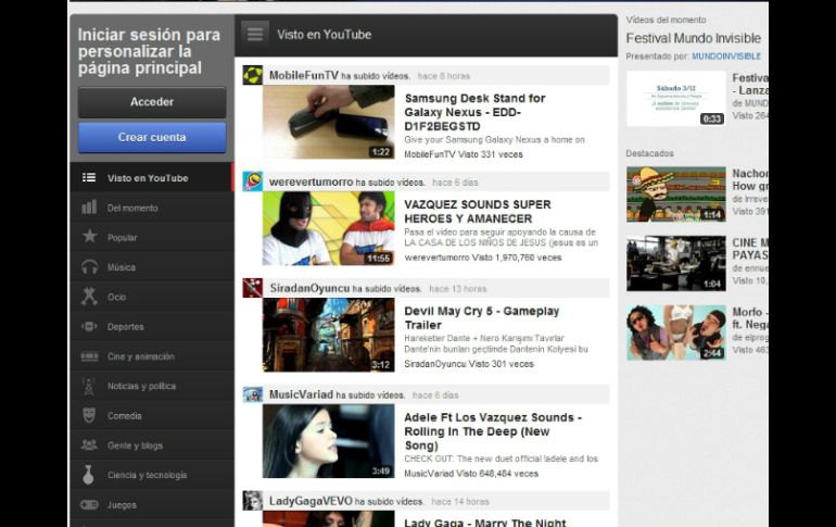 Tecnología | Promete una integración más fluida con otros servicios del grupo Google YouTube presenta su nuevo diseño con oferta similar a canales de TV El portal mostró una aplicación que permite ver sus videos en una consola de videojuegos Xbox 360 Por: AFP 2 de diciembre de 2011 - 15:34 hs La página principal permite a las personas cambiar los canales al estilo de los canales de televisión. ESPECIAL / SAN BRUNO, ESTADOS UNIDOS (02/DIC/2011).- YouTube presentó el nuevo diseño de su sitio web, que destaca sus diferentes "canales" en un estilo similar al de la televisión, y promete una integración más fluida con otros servicios del grupo Google. "Realmente estamos tratando de combinar lo mejor de la televisión con lo mejor de la web", sostuvo el jueves un responsable de YouTube, Shishir Mehrotra, al presentar los cambios en la sede de la compañía en San Bruno, California (oeste de Estados Unidos). "La expresión 'video en línea" está por desaparecer a medida en que se puedan ver los videos desde cualquier dispositivo", dijo. Para probarlo, YouTube mostró una aplicación que permite ver sus videos en una consola de videojuegos Xbox 360 conectada a internet. La nueva página principal de YouTube cuenta tanto con canales creados por cualquier usuario como con canales de televisión profesionales o de estudios de cine. Un panel a la izquierda de la pantalla permite a los usuarios encontrar fácilmente los canales según sus intereses y marcar y seguir los que consideran como sus favoritos. YouTube ofrece además a los usuarios recomendaciones según los videos que éstos ven. Por otra parte, el nuevo diseño de YouTube facilita la sincronización de las actualizaciones del canal a los suscriptores de redes sociales como Twitter, Facebook o Google+. La idea final del nuevo diseño es que YouTube sea más fácil de usar desde cualquier dispositivo conectado a internet, sea un teléfono, una computadora, un televisor o una tableta. "Esto es realmente el mayor rediseño y el mayor lanzamiento en la historia de YouTube", dijo otro responsable de la empresa, Noam Lovinsky. El logotipo de YouTube también cambiará para parecerse más al de Google. "A medida que se generalice el rediseño del sitio para todos los dispositivos, este será un punto de inflexión para los proveedores de contenido", aseguró Lovinsky. "Todo el mundo va a querer tener un lugar destacado en la página principal". La página principal permite a las personas cambiar los canales al estilo de los canales de televisión en lugar saltar de video en video. El nuevo diseño establece las bases para que los estudios de cine o de televisión creen canales de pago, un paso sobre el que YouTube se negó a comentar por el momento. YouTube también está evaluando un nuevo modelo de ingresos en el que los espectadores se pueden saltar los anuncios publicitarios, y los anunciantes sólo pagan por los fragmentos de promoción que las personas vieron. Temas Internet Google Páginas Web .You Tube Lee También Internet Bienestar: Pasos para conservar tu número móvil Plataforma de Hulu llegará a México; esto se sabe ¿Cómo desactivar paso a paso las respuestas de IA en Google? ¿Cómo restaurar fotos antiguas con Gemini paso a paso? Recibe las últimas noticias en tu e-mail Todo lo que necesitas saber para comenzar tu día Registrarse implica aceptar los Términos y Condiciones