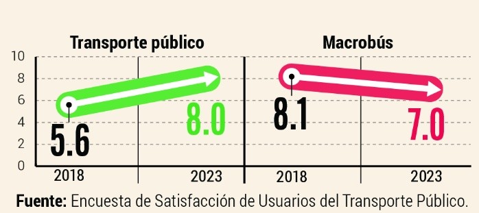 De acuerdo con los resultados de la Encuesta de Satisfacción de Usuarios del Transporte Público, que se dieron a conocer ayer, este servicio en la Zona Metropolitana de Guadalajara (ZMG) pasó de tener una calificación de 5.6 en 2018 a 8 en este año. Sin embargo, entre los datos presentados por el Instituto Metropolitano de Planeación (Imeplan), la Secretaría de Transporte (Setran) y la Coordinación General de Gestión del Territorio del Gobierno estatal, se destacó que pese a estos indicadores generales, el Macrobús bajó de 8.19 a 7.06 en el periodo referido. Las personas abordadas reclamaron porque el sistema es poco confortable. También por los problemas de ventilación que tienen sus espacios. Por ejemplo, el 15 de julio, Moisés Rodríguez se inconformó en redes porque llevaba más de 20 minutos esperando la llegada de un camión del Macrobús. El 13 de julio, Iván González escribió al Sistema de Tren Eléctrico Urbano (Siteur) y a la Setran que las estaciones del Macrobús son “calurosas en serio en verano, lentas de transitar y ruidosas”. Ese mismo día, Ivette Mendoza pidió a las autoridades revisar qué sucedía con la frecuencia de paso.“Tenemos esperando más de 20 minutos en Periférico Norte y calzada Independencia”, resaltó otro usuario. La titular del Imeplan, Patricia Martínez Barba, explicó que el cuestionario en general se aplicó a dos mil 502 pasajeros, del 23 de enero al 5 de febrero pasados.Pese a que la calificación general del sistema del transporte público en la Zona Metropolitana de Guadalajara creció, al pasar de 5.6 en 2018 a 8 en 2023, el tiempo promedio que los usuarios deben esperar para abordar una unidad aumentó. Según la Encuesta de Satisfacción de Usuarios del Transporte Público, mientras en 2018 las personas debían esperar alrededor de 10 minutos con 54 segundos por un camión, el tiempo subió a 11 minutos con 54 segundos en promedio (aunque hay personas que deben esperar el doble). Al respecto, el titular de la Secretaría de Transporte, Diego Monraz, dijo que, con el objetivo de disminuir los tiempos de espera, crecerán las flotas de las unidades, sumando un total de 234 camiones en las rutas que lo requieran, mismas que estarán entrando en diciembre de este año en zonas “de mayor incorporación” de municipios, como Tlaquepaque, Zapopan y El Salto. La encuesta también reveló el incremento en el tiempo promedio de los viajes de los usuarios, que aumentó casi 10 minutos. Mientras que en 2018 hacían trayectos de 38 minutos con 48 segundos, actualmente hacen 47 minutos con 18 segundos, en promedio. Ante ello, la titular del Instituto Metropolitano de Planeación (Imeplan), Patricia Martínez Barba, y el Ejecutivo del Estado coincidieron en que el incremento en los traslados puede deberse a la ampliación de rutas que ahora tiene el sistema. “Creció el 25% del territorio que cubrimos con el transporte público, ya llegamos más lejos, y pues era evidente que iba a tardar más el tiempo de traslados. Si venía alguien de Zapotlanejo, que antes era una ruta suburbana y ahora es una ruta urbana, es también parte de lo que impacta en los traslados”, justificó el gobernador de Jalisco. Sin embargo, a lo anterior también puede sumarse el hecho de que la velocidad promedio en la ciudad ha disminuido a consecuencia del tráfico y la carga vehicular. De acuerdo con estadísticas de la Dirección General de Infraestructura Vial de la Secretaría de Transporte (Setran), al 2018 se tenía una velocidad promedio en la ciudad de 23.5 kilómetros por hora; sin embargo, la Agencia Metropolitana de Infraestructura para la Movilidad (AMIM) estimó que a julio del año pasado la velocidad promedio era de 22 kilómetros por hora. A PARTIR DE OCTUBRETras publicarse los resultados de la Encuesta de Satisfacción de Usuarios del Transporte Público, en la que el Macrobús obtuvo un 7.06 en la más reciente evaluación, el titular de la Secretaría de Transporte (Setran), Diego Monraz, prevé la incorporación de nuevas unidades para prestar este servicio a los pasajeros. “Uno de los puntos que nos están pidiendo es mejorar la capacidad de las unidades y el confort durante el viaje, pero también es importante revisar cómo está la infraestructura. En este BRT se van a incorporar 11 unidades articuladas de 18 metros, que sería un crecimiento del 22% de la flota en noviembre de este año. Ya están pedidas las unidades, ya están fabricándose”, dijo. De las 11 unidades articuladas, siete estarían llegando en noviembre próximo, mientras que las otras cuatro se sumarían en marzo de 2024. Otras 15 unidades duales se sumarán a partir de octubre, según lo informado ayer en rueda de prensa. A ello, añadió, se sumará un programa de “mantenimiento mayor” que supone la erogación de 10.6 millones de pesos para la rehabilitación de las estaciones del Macrobús, que incluyen la pintura de la estructura de las estaciones y pisos, y mantenimiento correctivo y preventivo de las puertas automáticas.PROMEDIO DE 300 MIL VIAJES DIARIOSDe acuerdo con la última Encuesta de Satisfacción de Usuarios del Transporte Público, las personas que utilizan el Peribús prefieren este servicio en comparación con el que ofrecían las rutas de camión que corrían por el Periférico. Esto según las calificaciones dadas a este nuevo sistema de transporte que opera oficialmente desde enero de 2022 como parte de las mejoras impulsadas al transporte público, y el cual tiene al día de hoy un promedio de 300 mil viajes diarios, según cifras de la Secretaría de Transportes (Setran) . Según la encuesta, realizada por el Instituto Metropolitano de Planeación (Imeplan), la Setran y la Coordinación General de Gestión del Territorio, mientras que los usuarios de los camiones que corrían por el Periférico les dieron una calificación de 5.6 en el ejercicio aplicado en el 2018, al servicio del Peribús le dieron una calificación de 8.3