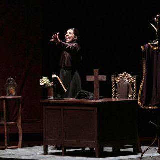 Es la primera escena de la obra ''Al filo del agua'', del jalisciense Agustín Yáñez (1904-1980), que hoy por primera vez se presentó sobre las tablas en el Teatro Degollado, foro que lució vacío tal vez por la lluvia y el frío de la tarde o porque en algún momento entre el 4 y 11 de octubre se cambió la hora del estreno.