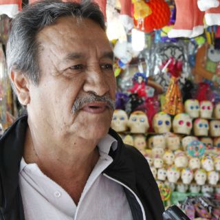 Menciona que siempre recurre a la feria para comprar lo que necesita en esta época, pues los precios son accesibles. En esta ocasión compró un mantel de catrinas de colores, adornos, papel, incienso, copal; de paso hasta juguetes para sus dos nietas, quienes lo acompañaron y se llevaron una guitarra y un arco de madera.