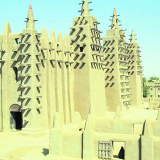 Semejante a un inmenso castillo de arena salpicado de torres y pilastras, la Gran Mezquita de Djenné se levanta en una amplia explanada de esa ciudad de Malí. Del siglo XIII, se trata del mayor edificio de adobe del mundo. Reconstruido tal cual en 1906, sigue resultando fascinante. El interior está vetado a los no musulmanes. (Guía Michelin)