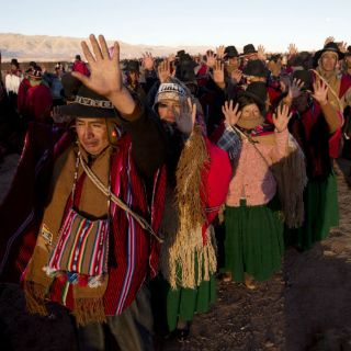 Creyentes de todas las capas sociales acuden a medio centenar de sitios en las montañas a esperar con las manos extendidas al cielo la salida del sol, Tata Inti, para los incas.