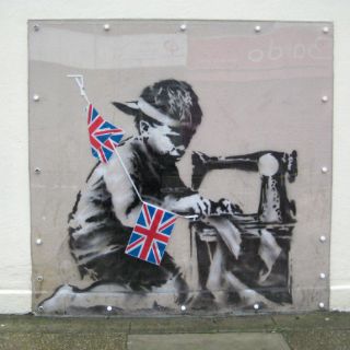 Banksy es un artista urbano mundialmente conocido y rodeado de misterio, del que se conocen pocos datos sobre su biografía, y que debe su popularidad a sus satíricos dibujos que denuncian los problemas de la sociedad actual.
