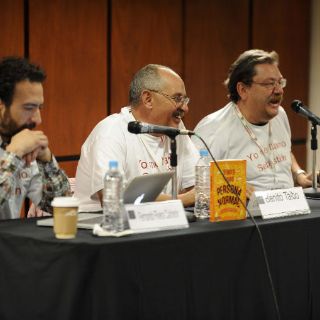 “Esta feria es de los lectores, los que venimos a otra cosa. Desarmados y sin guaruras”, recalcó. No obstante, concluyó que la vida está llena de gente buena, por lo que siente optimista ante el futuro del país. En suma, el humor cáustico de los hermanos Taibo hizo la delicia de los asistentes, quienes se mostraron entusiasmados por leer “Persona Normal”.