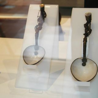 BOGOTÁ, COLOMBIA (27/OCT72015).- Dos pequeñas cucharas de antes y después de Cristo forman parte de la exposición de arte decorativo titulada "Cucharas: La cultura en un objeto", de propiedad del