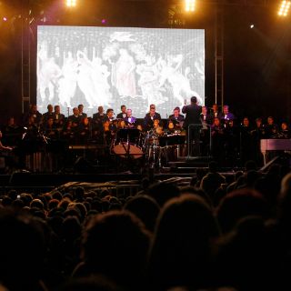 En el escenario, el Coro del Estado de Jalisco, que dirige Sergio Hernández, comenzó su interpretación con O fortuna, fragmento de Carmina Burana, mientras en una pantalla, que sirvió de escenografía, se proyectaron escenas de pinturas renacentistas de artistas como Leonardo Da Vinci o Miguel Ángel, así como diseños inspirados en la naturaleza.