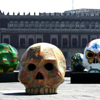 Calaveras gigantes invaden el Zócalo capitalino