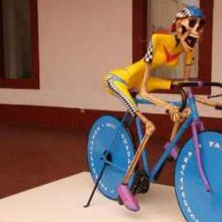 Autoridades de Tlaquepaque convocaron a un concurso de esculturas a propósito de los Juegos Panamericanos, resultando ganadora una catrina ciclista