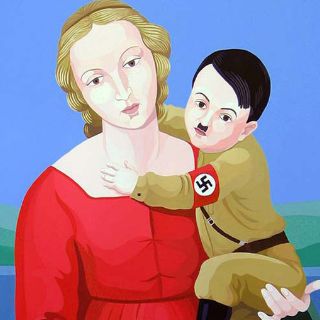 La obra, titulada "La Virgen del Tercer Reich" y elegida para el cartel promocional de la exposición "Zeitgeist", presenta a una virgen que arropa a un niño con bigote que recuerda a la imagen del dictador alemán y que luce una esvástica negra en el brazo.