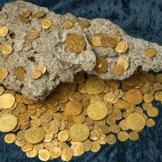 En total encontraron más de 350 monedas de oro, incluidos nueve reales, una moneda muy poco común ordenada por el rey Felipe V de España