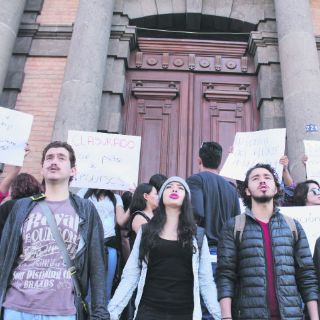Las palabras de Maetzin representaban el eco de casi medio centenar de jóvenes, que con el rostro endurecido y con voz firme se formaron durante casi una hora al exterior de la secretaría. “Venimos estudiantes de diversas escuelas de la Universidad de Guadalajara, del Instituto de Arte Escénico (Inart), creadores de varias universidades y diferentes grupos de la ciudad”, acotó.