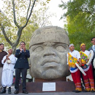 NUEVA YORK, ESTADOS UNIDOS (14/OCT/2012).- Una réplica de una cabeza olmeca fue colocada hoy frente a la sede de la Organización de las Naciones Unidas en esta ciudad para promover la cultura de Veracruz y destacar su importancia como base de la civilización mesoamericana.