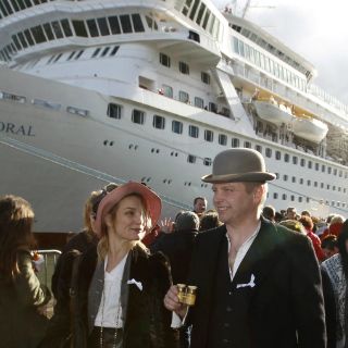 Cobh, alguna vez conocida como Queenstown, fue la última escala del Titanic antes de zarpar al Atlántico en abril de 1912. Cuando el Balmoral se aceró a puerto el lunes, fue recibido por miles de personas.