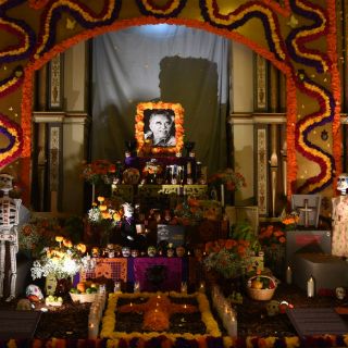 También se colocaron catrinas, artículos personales del autor de "El otoño del patriarca" como su máquina de escribir, ediciones de sus novelas, incienso, veladoras, agua, rosas amarillas y las tradicionales flores de cempasúchil.