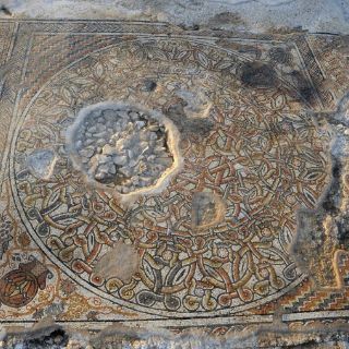 El colorido mosaico, que se remonta al período bizantino (siglos IV a VI), fue descubierto en los campos de cultivo del kibutz Bet Qama, durante los trabajos de supervisión para la construcción de un cruce en la principal autopista del país, informó la Dirección de Antigüedades en un comunicado.