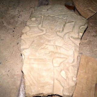 El hallazgo se registró a fines de 2010 en el lecho de un arroyo localizado a 100 metros al oeste de dicha edificación prehispánica, cuando una fuerte lluvia dejó parcialmente expuesta una piedra arenisca grabada con una escena en bajorrelieve, afirmaron los arqueólogos.