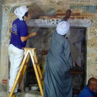 Como parte de los trabajos realizados se fortalecieron los muros originales del edificio, se retiraron más de cuatro metros de tierra que cubrían la fachada y se rearmaron los relieves del interior de las cámaras que narran la vida y obra del sacerdote egipcio.