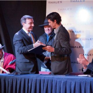 A la firma del acuerdo asistieron el ministro boliviano de Culturas, Marko Machicao; el embajador de Francia en Bolivia, Denys Wibaux, y el vicepresidente de Thales para América Latina, Rubén Lazo.