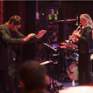 GUADALAJARA, JALISCO (13/JUN/2013).- Un álbum emblemático de la historia del jazz, Sketches of Spain, de Miles Davis y Gil Evans, fue interpretado por la GC Jazz Orchestra y la trompetista Ingrid Jensen, la noche este jueves en el Teatro Degollado.