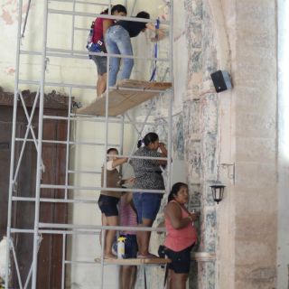 La restauradora detalló que al comenzar la intervención a la Iglesia de Sacalum, lo primero que hicieron fue estabilizar los altares, consolidando el interior de los mismos, porque había muchos de ellos que en algunas partes estaban huecos.