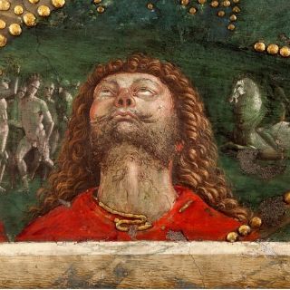 La escena se sitúa en los frescos del Apartamento Borgia, en el muro dedicado a la ''Resurrección de Cristo'', en la Sala de los Misterios