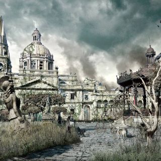 Andares cubierto por al agua, la Catedral de Guadalajara siendo atacada por dragones, el Hospicio Cabañas en el abandono en medio de una era de hielo que extinguió a la raza humana, Plaza de Armas invadida de vegetación y fauna y otros.