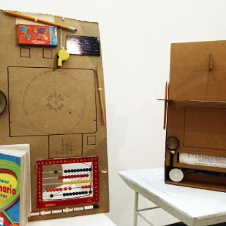 Por ejemplo las piezas Sustentable I y II, de Christian Vargas, que según explicó, son una sátira a las tabletas, hoy tan de moda. “Son las tablets en su estado más primitivo”, dijo el joven. Están confeccionadas a base de cartón, y a ellas se añaden objetos que cumplen funciones específicas: para la aritmética básica, tienen un ábaco; para la alarma, un silbato; para el correo, un sobre; para la iluminación, unas velas; y un pequeño mapa para el sistema de posicionamiento global.